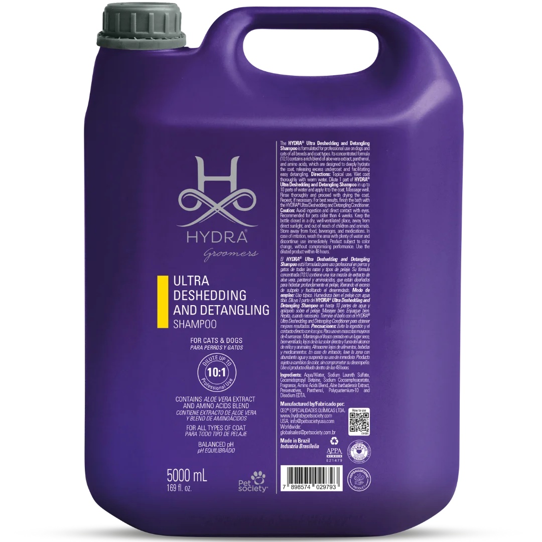 Hydra Ultra Deshedding and Detangling Shampoo deeply hydrate and nourish the coat and reduce frizz and enhance finishing.