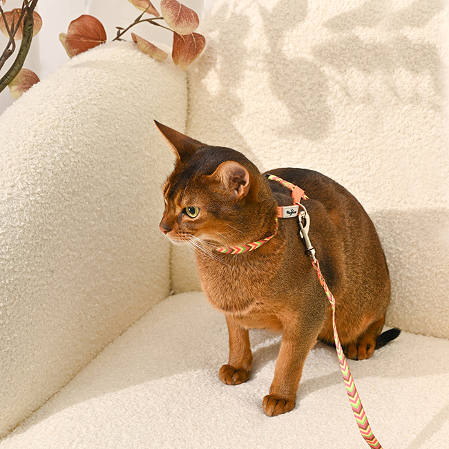 Adventure awaits! Keep your cat safe and comfy with this uniquely patterned harness and leash set. Perfect for outdoor strolls together. Fully adjustable for a snug fit, this harness is both sturdy and lightweight. A built-in D-ring makes leash attachment easy, so your feline friend can explore the great outdoors in style and security.
