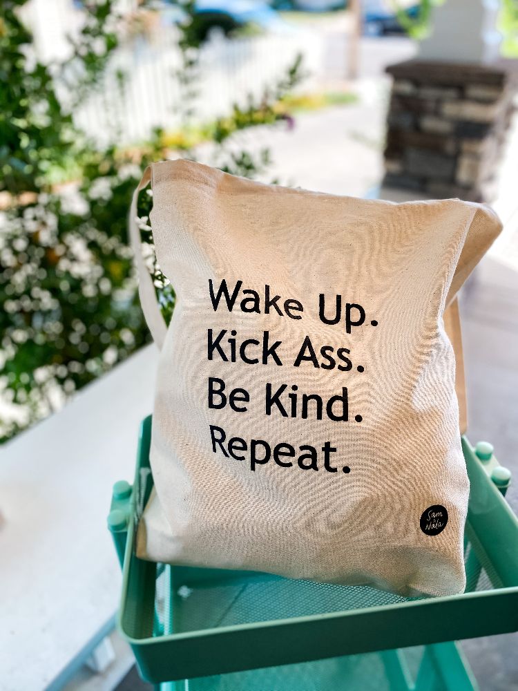 These handmade canvas totes were thoughtfully created for Sam & Nala by the women of Creamos in Guatemala City, using premium upcycled denim from the New Denim Project. Each bag is printed with words we feel are worth sharing.