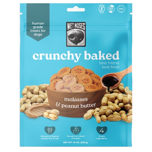 Bring the nutty goodness with Wet Noses Crunchy Baked Peanut Butter & Molasses Treats! Made with freshly ground peanut butter and rich molasses, these oven baked crunchy treats deliver deep, comforting flavor in every bite. Crafted with real, human grade ingredients for simple, feel-good treating.