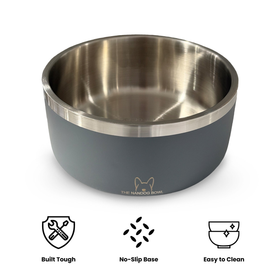 Built Tough: Double-walled stainless steel resists rust and corrosion for long-lasting use. No-Slip Base: Anti-skid rubber bottom keeps the bowl in place during meals Easy to Clean: Dishwasher-safe (top rack recommended) for fast and hygienic cleanup.