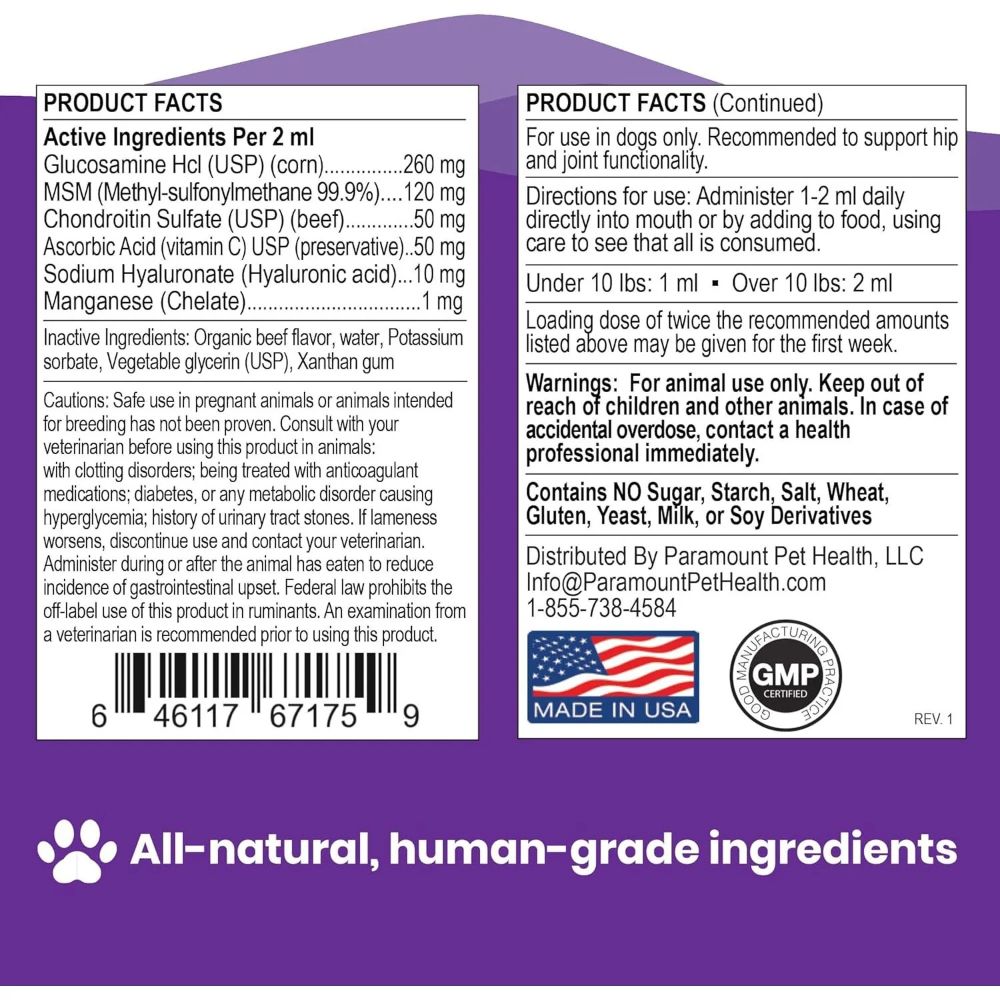 SUPPORTS JOINT HEALTH- Paramount Pet Glucosamine for dogs contains a blend of ingredients shown to maintain cartilage, the tissue that cushions joints.