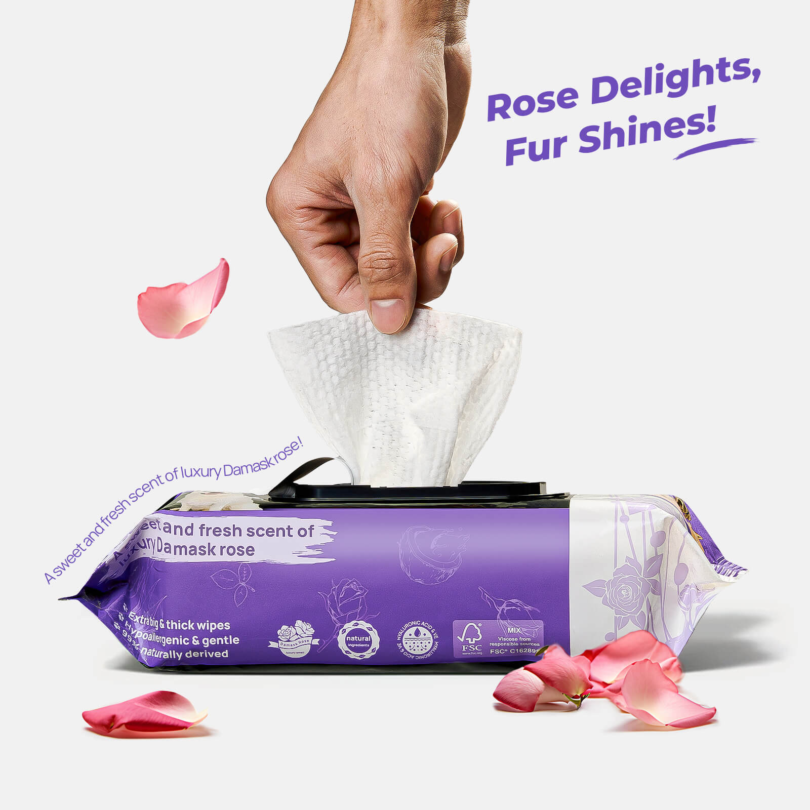 Made with plant-based ingredients, these wipes help maintain a soft, smooth coat while supporting overall cleanliness as part of a regular pet care routine. The light rose scent adds a pleasant, long-lasting freshness, helping pets smell clean without being overpowering. It's perfect for both pets and their owners to enjoy.