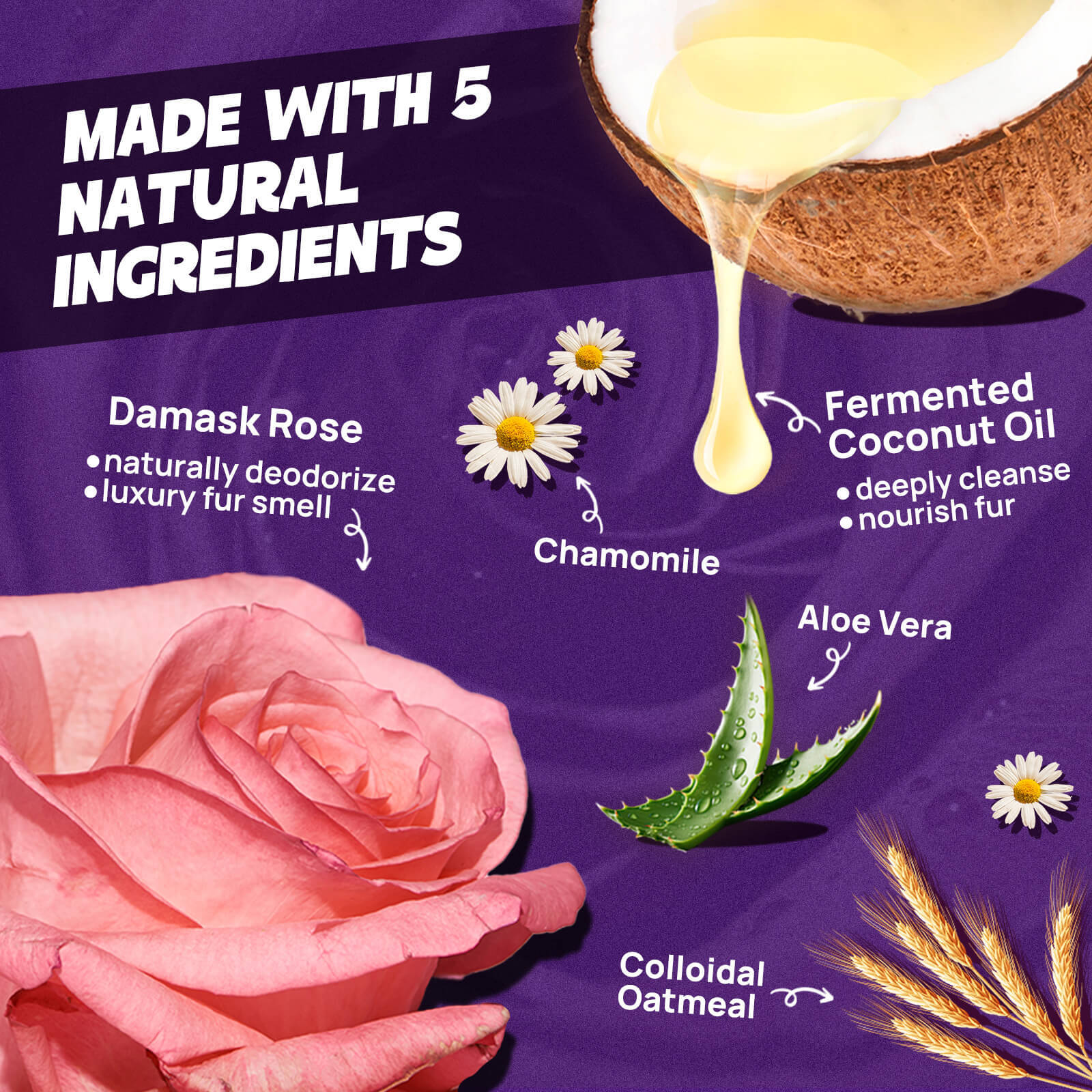 Developed with EDI-purified water compliant with US Pharmacopoeia standards and a blend of naturally derived ingredients, including fermented coconut oil, hyaluronic acid, vitamin E, Damask rose, aloe vera, chamomile, and oat extract. Delivers efficient cleansing while hydrating and conditioning the coat.