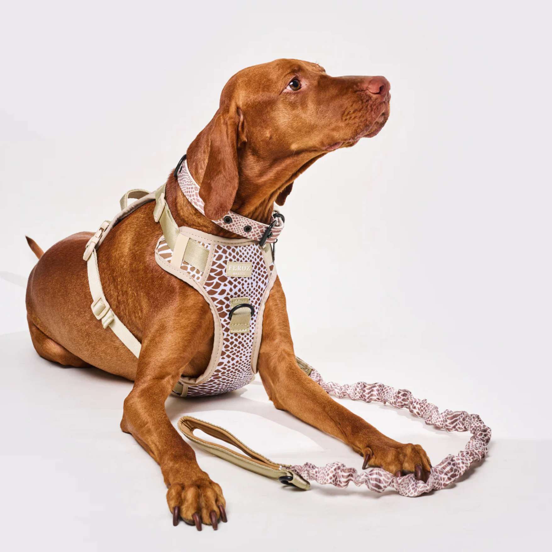 Dog leashes feature an expandable no-pull system and a handle covered in soft neoprene.