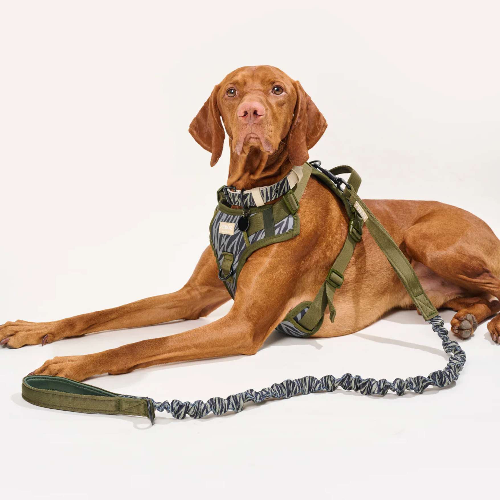 Dog leashes feature an expandable no-pull system and a handle covered in soft neoprene.