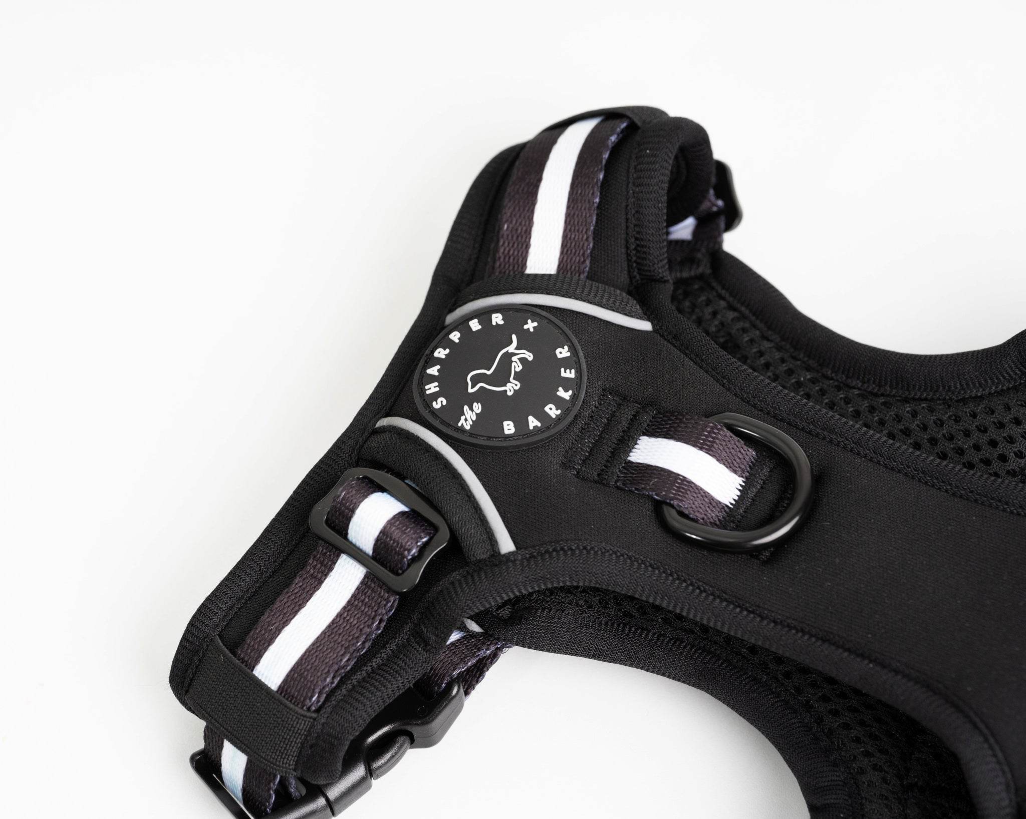 The reflective piping on the harness provides added visibility during low-light conditions, making it ideal for walks in the evenings or early mornings. With its chic design, the dog harness will make your furry friend stand out among the pack.
