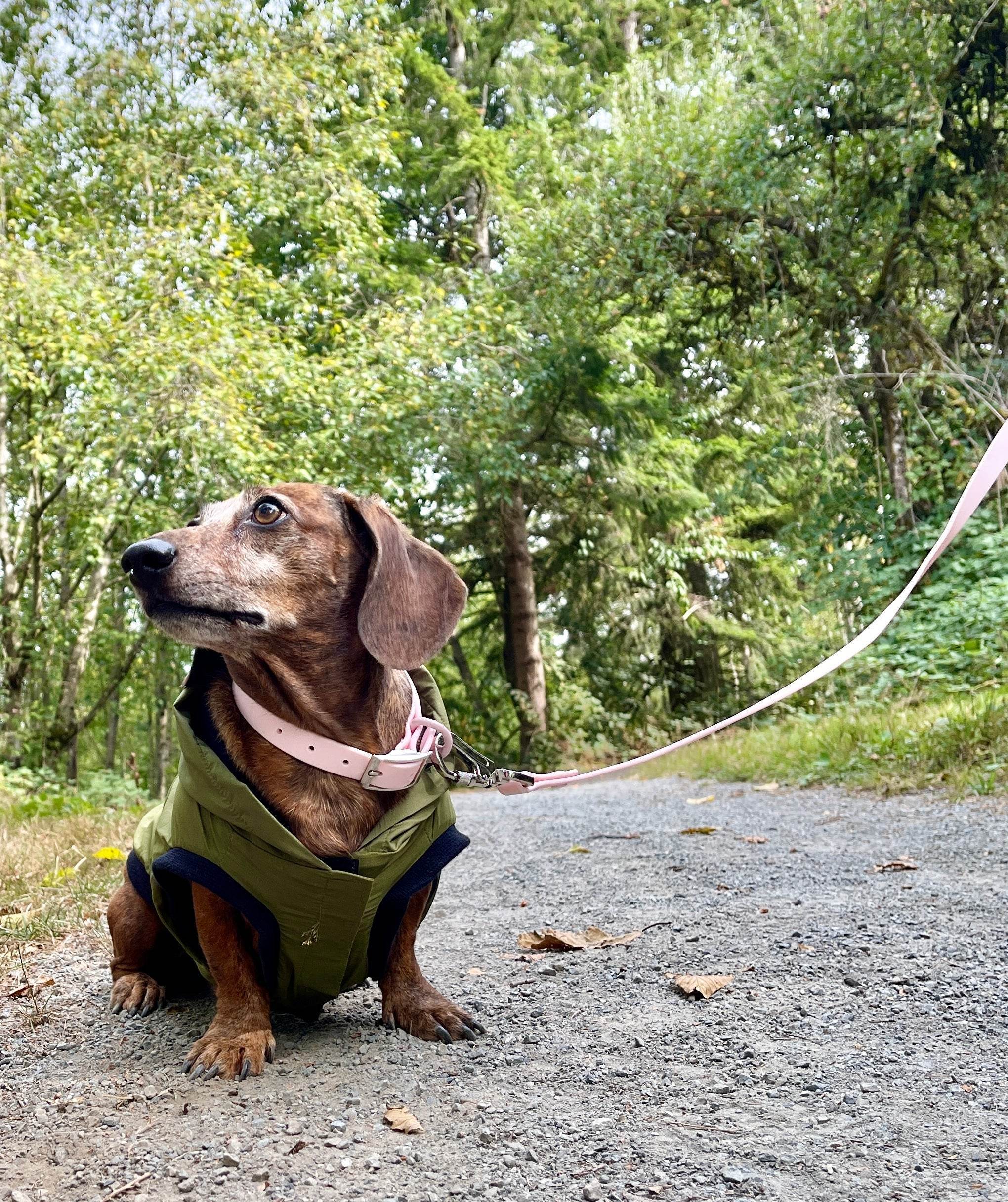 This waterproof dog collar was carefully crafted to securely grace the neck of your pampered pup. Wipe it clean when needed and easily adjust to size.