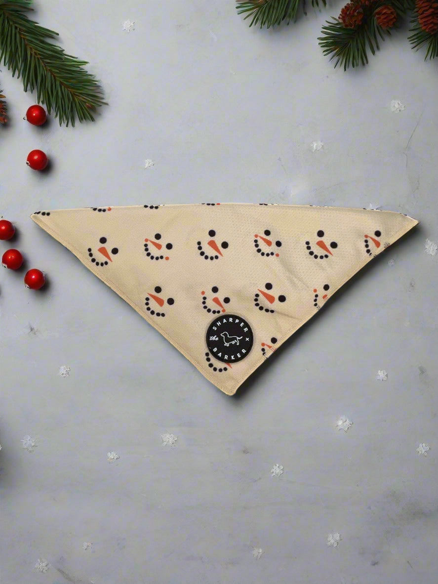 Make a wintery statement at the dog park with the Frosty Bandana! Featuring a fun snowman print, this is sure to get tails wagging 40cm x 40cm Square