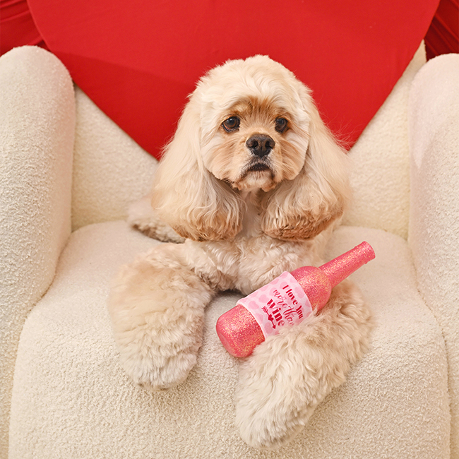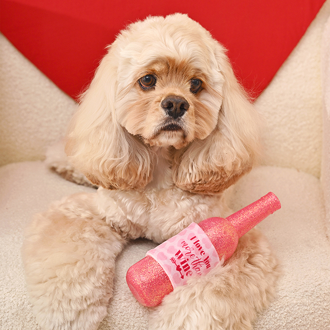 Forget the chocolates, give your pup a Valentine’s “wine”! Each toy features a squeaky rubber bottle wrapped in crinkle plush, offering your pup a variety of sounds and textures to explore. Safe for dogs of all sizes, the rubber bottle promotes healthy chewing habits. Your pup can chew and toss all day long, making playtime endlessly fun.
