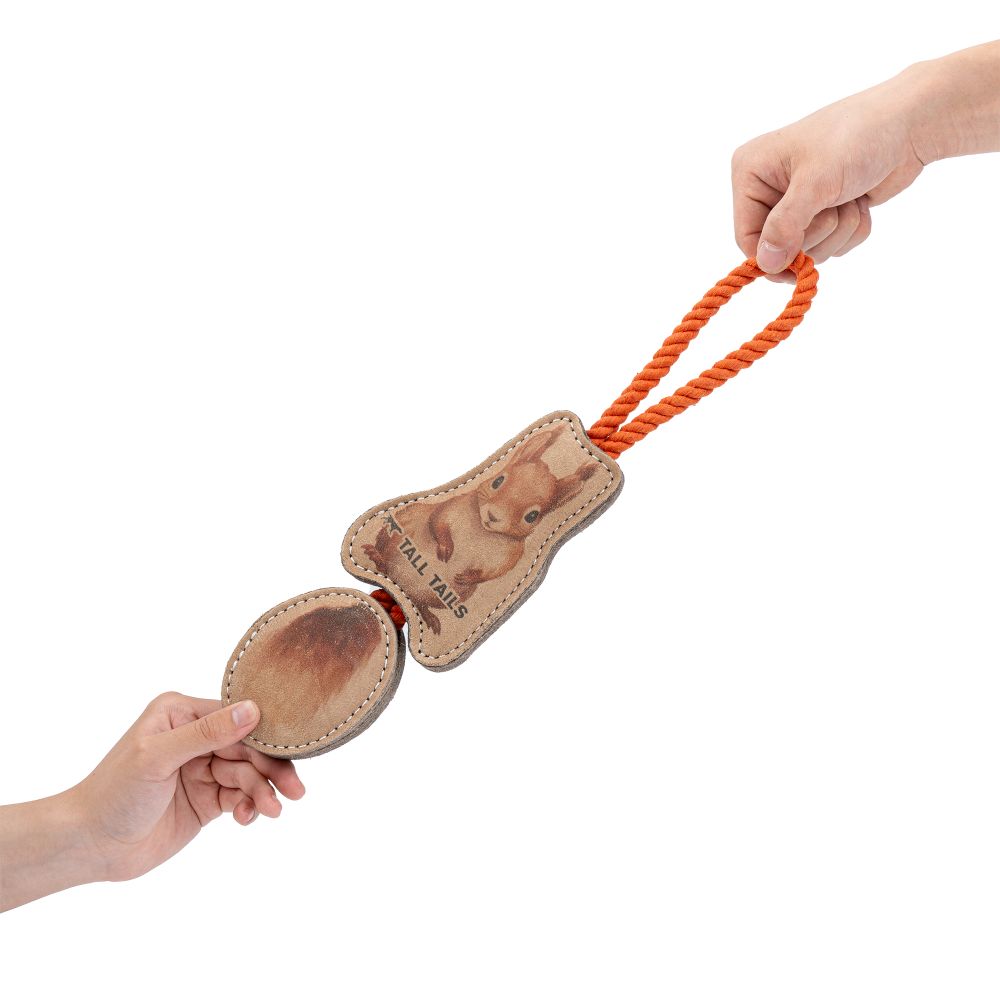 Whether your pup wants to play a rousing game of fetch or tug-of-war, this Natural LeatherJointed Squirrel Tug Dog Toy is made with you and your pup in mind. No toxic chemicals, artificial coloring, or simulated flavoring are used in the production process. This toy is made for dogs who love to retrieve and tug, but is not recommended for aggressive chewers.