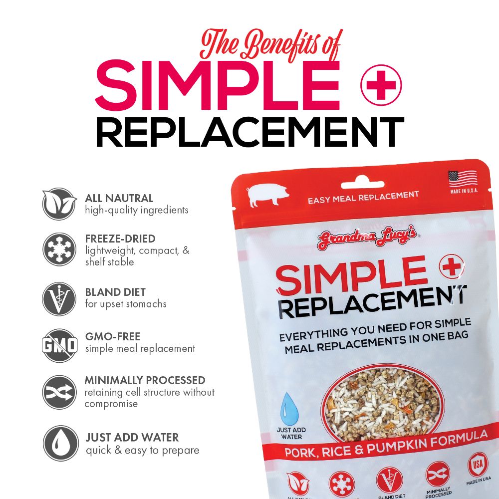 Provide gentle relief for your dog or cat's upset stomach with Grandma Lucy's Simple Replacement, deliciously soothing bland diet, crafted for pets experiencing digestive upset and stomach sensitivities. Made with natural ingredients to help support digestion, while providing supplimental nutrition for dogs and cats of all ages and life stages. Whether your pet is dealing with temporary stomach issues or requires ongoing digestive support, this freeze-dried recipe offers a wholesome solution that are perfect maintaining digestive health in pets with sensitive stomachs.
