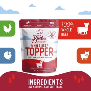 Our raw dog food toppers are a great and natural option for picky eaters! Top existing diet with single ingredient protein toppers to add nutritious.