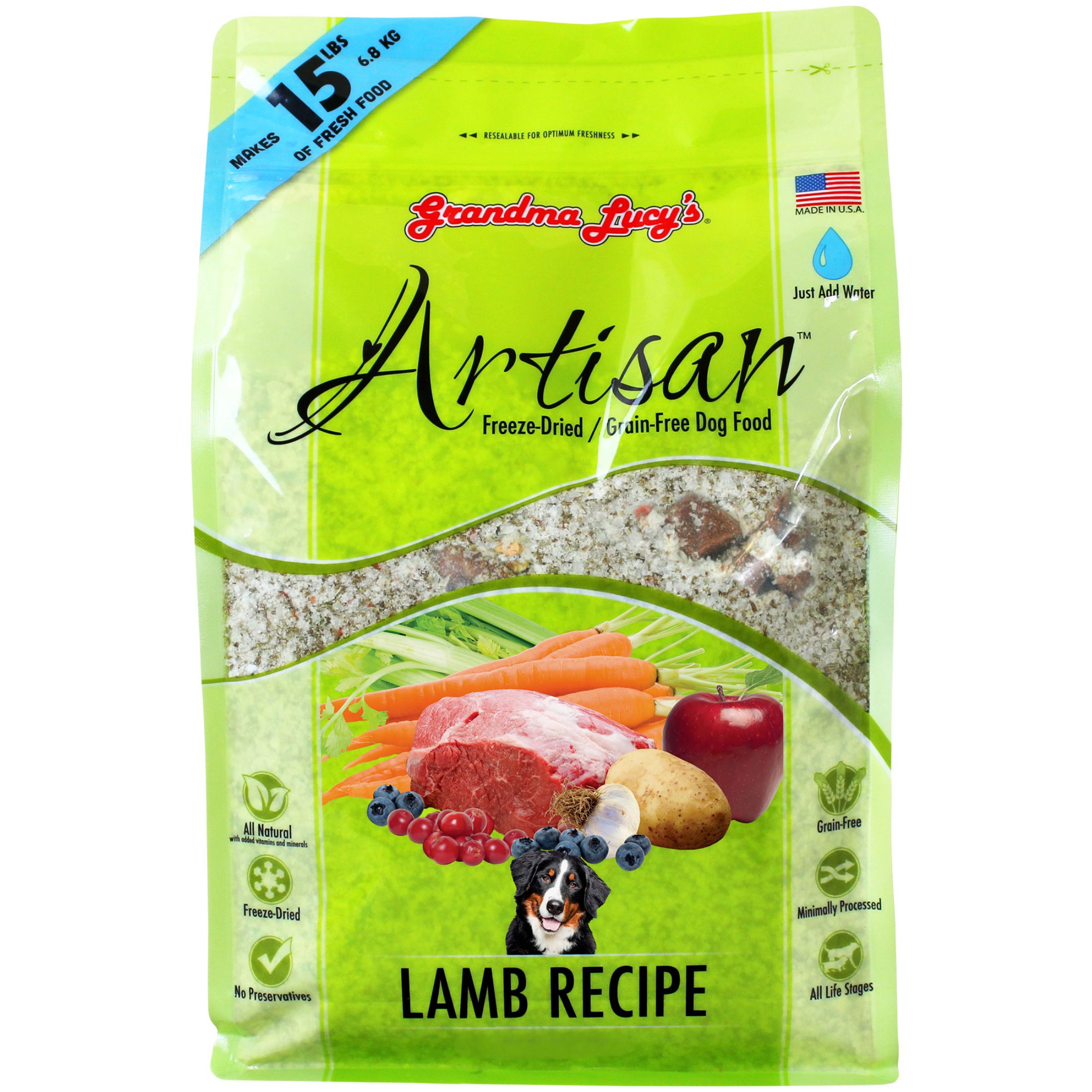 Easy to prepare, freeze dried, nutritious, complete and balanced meal, topper, or snack for your pup. Just add water to our grain-free Grandma Lucy's Aritsan Lamb and watch it transform into a hearty, stuffing like consistency within minutes. Packed with gently cooked lamb and featuring a blend of super food ingredients including flax, carrots celery, apples blueberry and cranberry. Shelf stable, lightweight, and preservative free. Fresh, wholesome nutrition made simple. Artisan, the original and best selling recipe, is a fantastic combination of digestibility and palatability making it a perfect way to introduce natural feeding into your pet’s diet. This recipe is an ideal choice for a pet with food sensitivities or a picky eater.