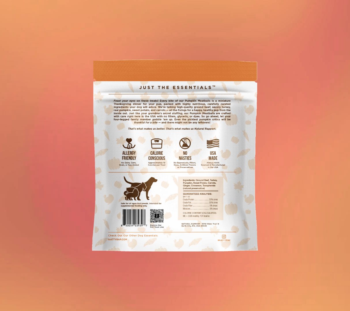 Feast your eyes on these treats! Every bite of our fan-favorite Pumpkin Meatballs is a miniature Thanksgiving dinner for your pup, packed with highly nutritious, carefully curated ingredients your dog will adore. We're talking high-quality ground beef, savory turkey, real pumpkin, sweet potato, and carrots - all the fixings for a healthy, happy pup from the inside out. Just like your grandma's secret stuffing, our Pumpkin Meatballs are crafted with care right here in the USA with no fillers, glycerins or dyes. So go ahead, let you four legged family member gobble 'em up. Even the pickiest pumpkin critics will be thankful for a bite - and there might not be any leftovers!