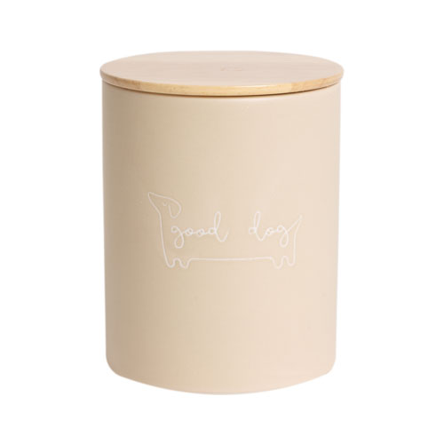 Keep your pup’s snacks fresh and your kitchen stylish with Pearhead’s Ceramic Good Dog Treat Jar in neutral taupe.
