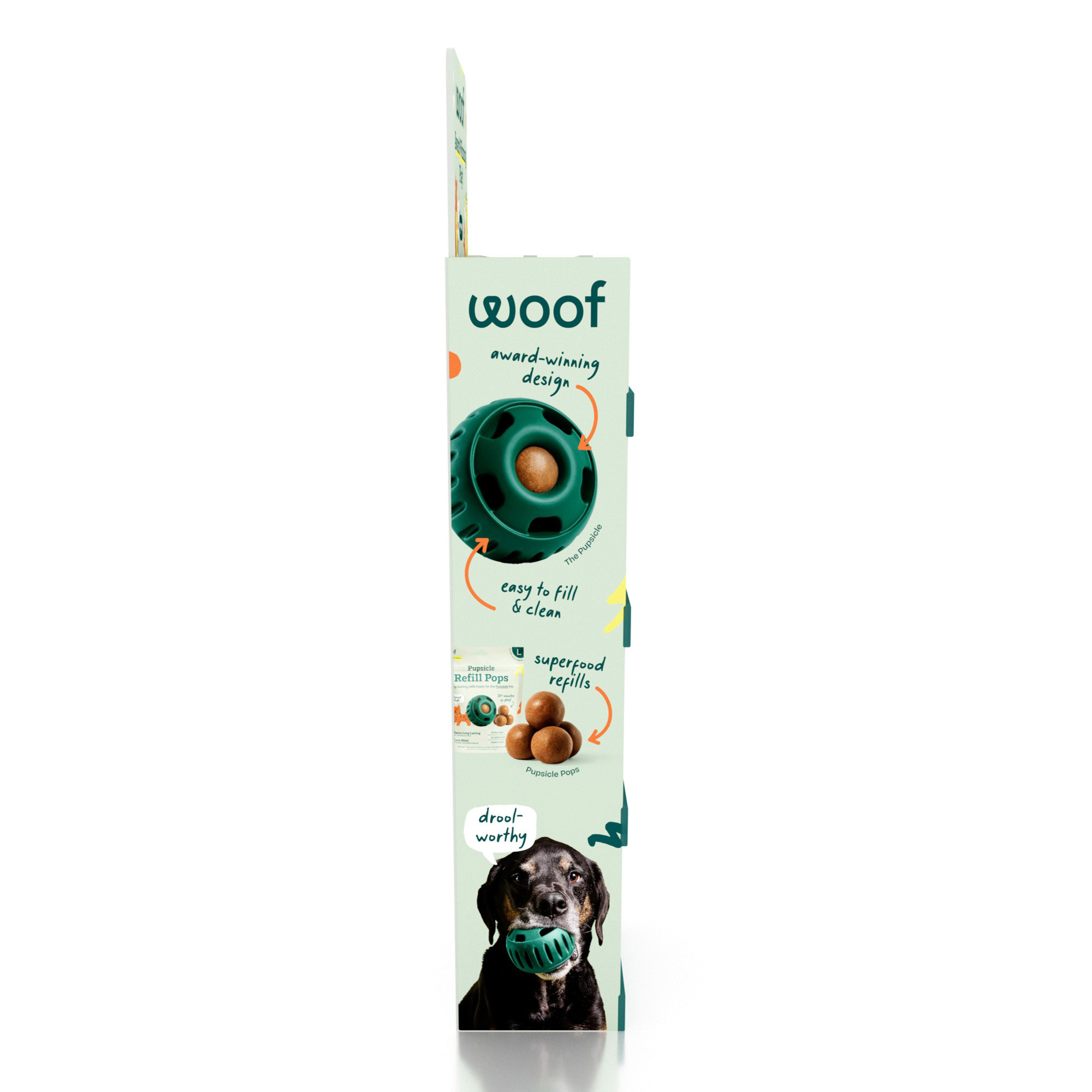 Designed for maximum convenience and visual appeal, this compact display is the perfect way to introduce your customers to our top-selling Pupsicle, Chicken Pops, and Beef Pops.
