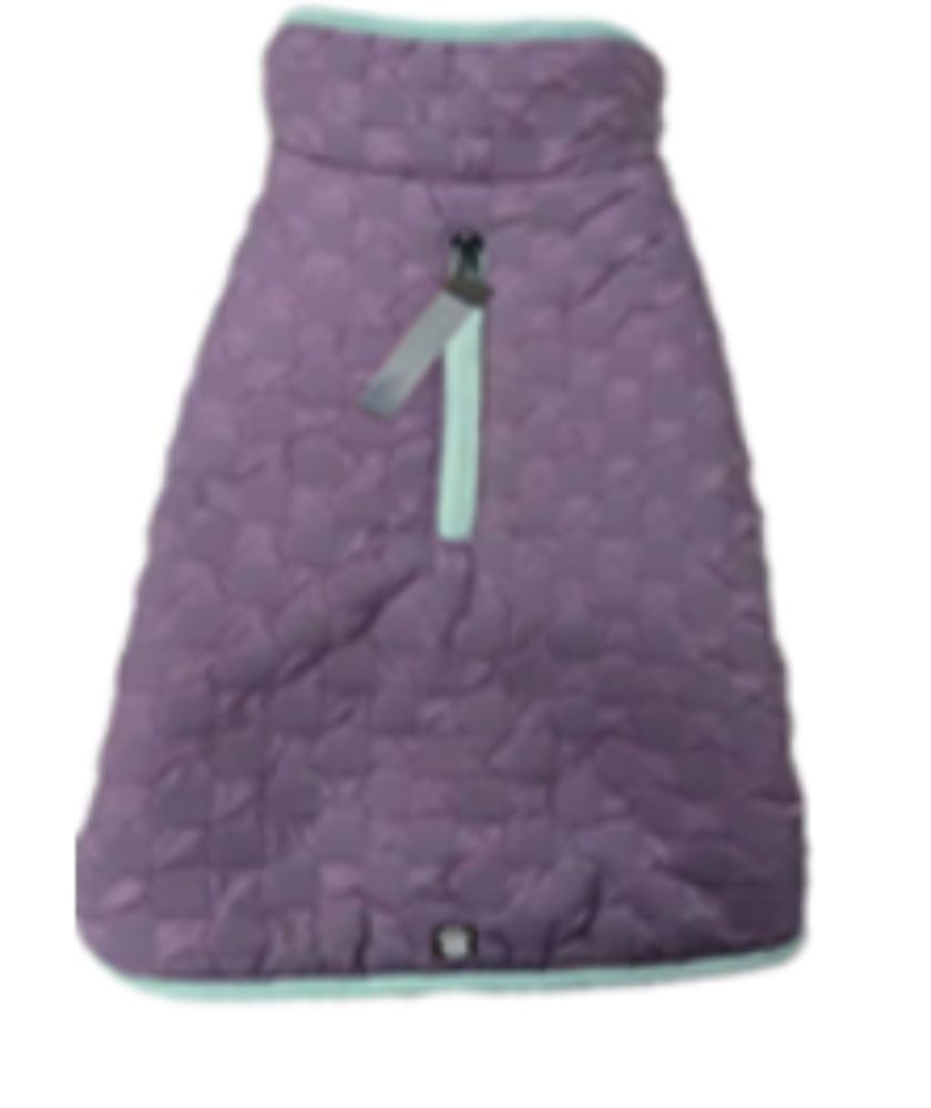 Luna Peak Buffalo Check Textured Parka in Plum/Aqua, a stylish and durable option for your furry companion. Crafted with buffalo check textured nylon fabric, it offers both durability and style. The 2-way zipper harness opening ensures easy harness access, complemented by a leash opening at the neck for added convenience. Inside, the anti-pill fleece lining keeps dogs warm and cozy. With contrast trim for visual interest and adjustable neck and belly straps for a secure fit, this parka combines fashion with function seamlessly.