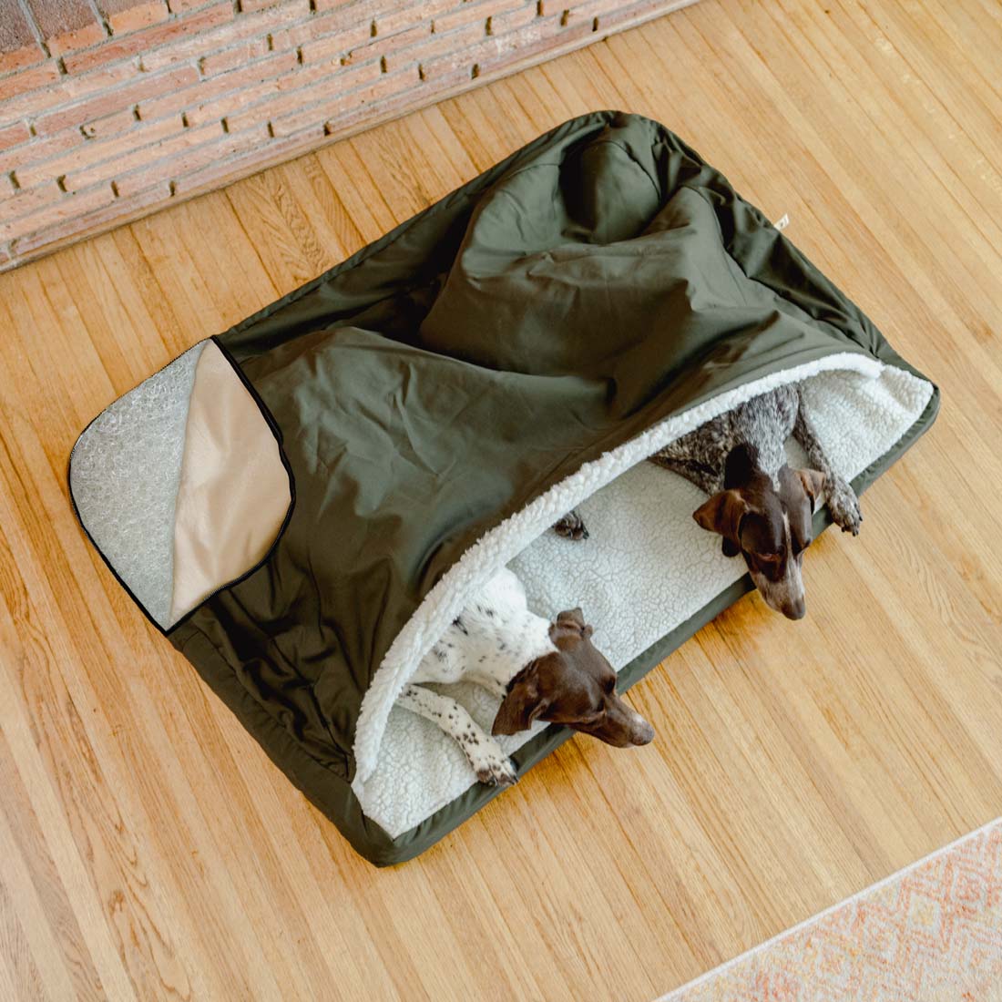 You asked. We listened. Our best-selling Rectangle Cozy Cave™ just got a revolutionary upgrade — and it’s unlike anything else on the market. Introducing the Rectangle Cozy Cave™ with Forgiveness™ Foam — the first orthopedic dog cave bed with a fully washable mattress. That’s right. From the microsuede cover to the orthopedic core, every inch of this bed is designed to be cleaned, refreshed, and restored — without compromising comfort. With up to12.5 square feet of sleep surface, this bed is made for big dogs, multiple dogs, or dogs that simply like to spread out. But more importantly, it’s made for dogs who need support, and pet parents who need solutions. The Forgiveness™ mattress is breathable, resilient, and engineered to help ease joint pain — all while resisting odors, allergens, and bacteria. Whether your pup is house-training or entering their golden years, this bed was made to restore comfort and dignity. And with a 10-year warranty on the mattress, it just might be the last bed you’ll ever need to buy. "NOBODY else sells anything like it... It’s one of the most remarkable innovations in pet care that we’ve found." — Forgiveness™ customer, Three Spaniels Like a Hug For Your Dog! Is your dog a cuddler? A snuggler? A burrower? Then the Cozy Cave dog bed is just what you're looking for! The hooded dog bed design lets your dog snooze between layers of soft Sherpa lining for the ultimate in enveloped comfort and coziness. The removeable tubing in the hood lets you remove the tubing the hood for a looser, "blanket-like" structure or keep inserted for a tighter fit for an open "cave-like" feeling to suit your dog's preferences. Sleeping in the Cozy Cave is the next best thing to sleeping next to you, and your dog will love it! Calmer, Happier Dogs. Made to appeal to a dog's natural instincts for burrowing, the Cozy Cave is the best dog bed for dogs who love sleeping under blankets or prefer to spend time in their own little "den". Our dog cave bed gives them a place of their own to relax with a feeling of safety and security for less anxiety and more restful sleep. Best In Class. The Cozy Cave is the best-in-class dog cave bed on the market, with 1000's of 5-star reviews from happy customers!