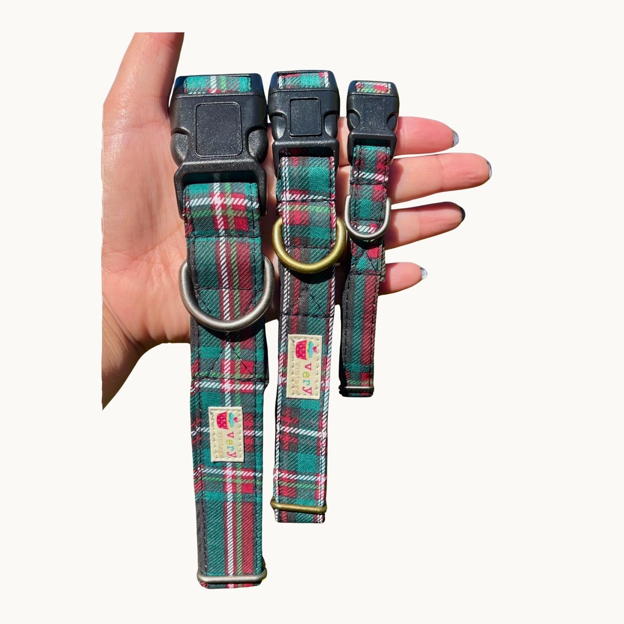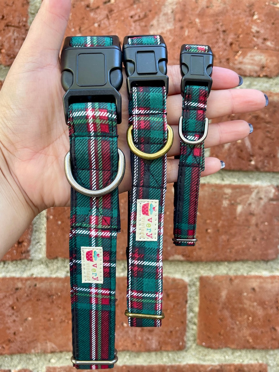 Festive Red & Green Holiday Tartan Pattern. Organic Cotton Dog & Cat Collars & Leashes. Eco-Friendly. Handmade in Los Angeles.