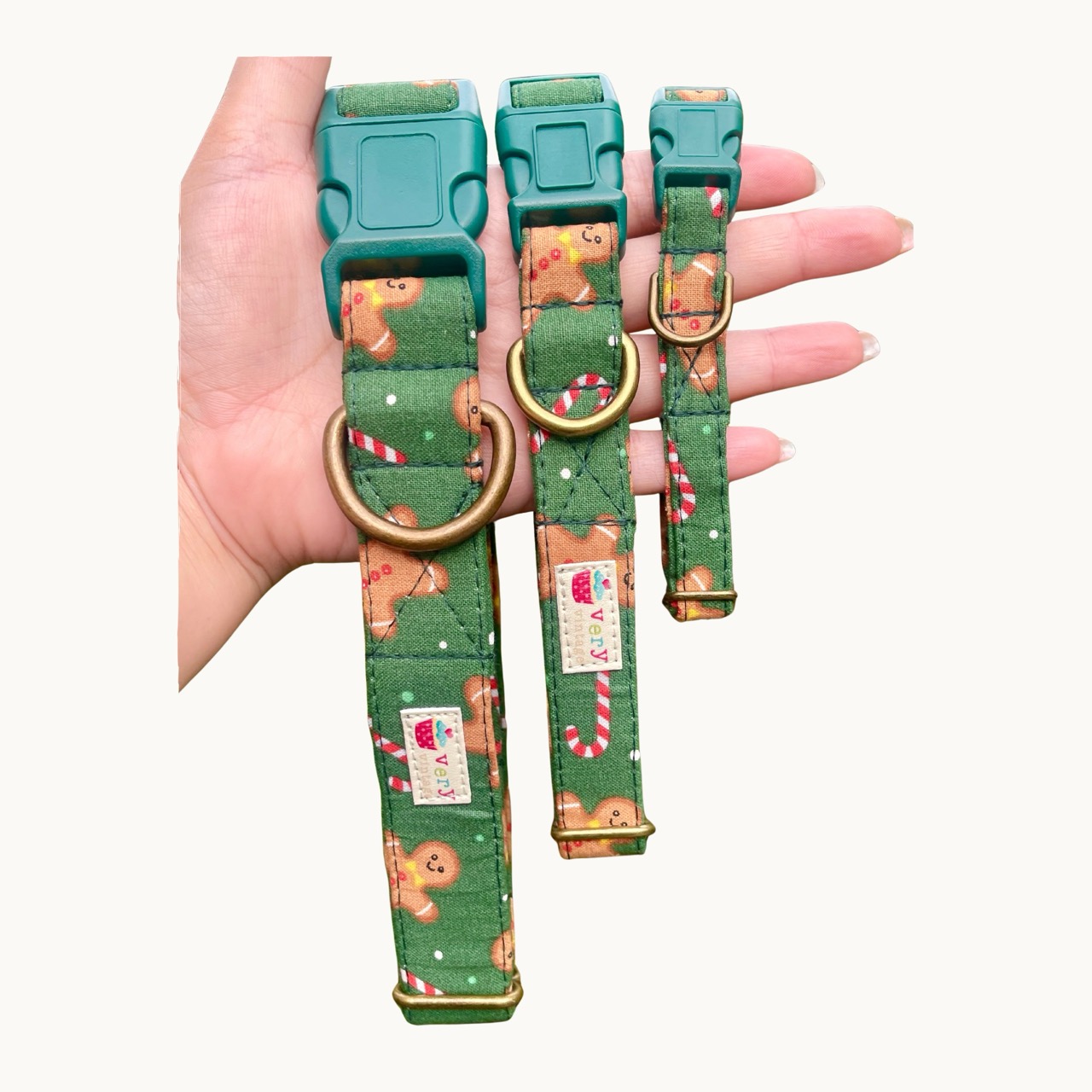 Sweeten up the season with our Gingerbread dog collar! 💚✨ Featuring happy gingerbread cookies, candy canes, and snowflakes on a festive green background, this collar is handmade with care and perfect for spreading holiday cheer. Crafted with 100% cotton layered over organic cotton webbing, it’s both durable and delightfully soft — the perfect mix of cozy and cute!