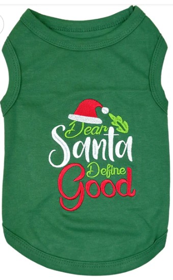 Parisian Pet 'Dear Santa Define Good' Dog Christmas T-Shirt - Festive Pet Shirt for Cats & Dogs, Green
