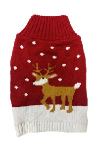 A holiday inspired sweater done in red and white. All sweaters come packaged on a sturdy cardboard hanger. Item is 100% acrylic and dry clean only is suggested for proper care.