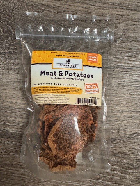 Meat & Potato's! Crafted with love and care in our kitchen, these treats are packed with essential nutrients and are loved by dogs.