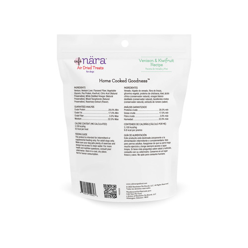 Cafe Nara air dried treats for dogs are minimally processed and packed with flavor. Gently air dried in small batches in New Zealand, they are a high protein treat for puppies and adult dogs of all sizes and breeds. Grain and gluten free with no corn or soy. Cafe Nara air dried treats are made without artificial flavors, colors or preservatives. Perfect for a training treat, snack, or just because!