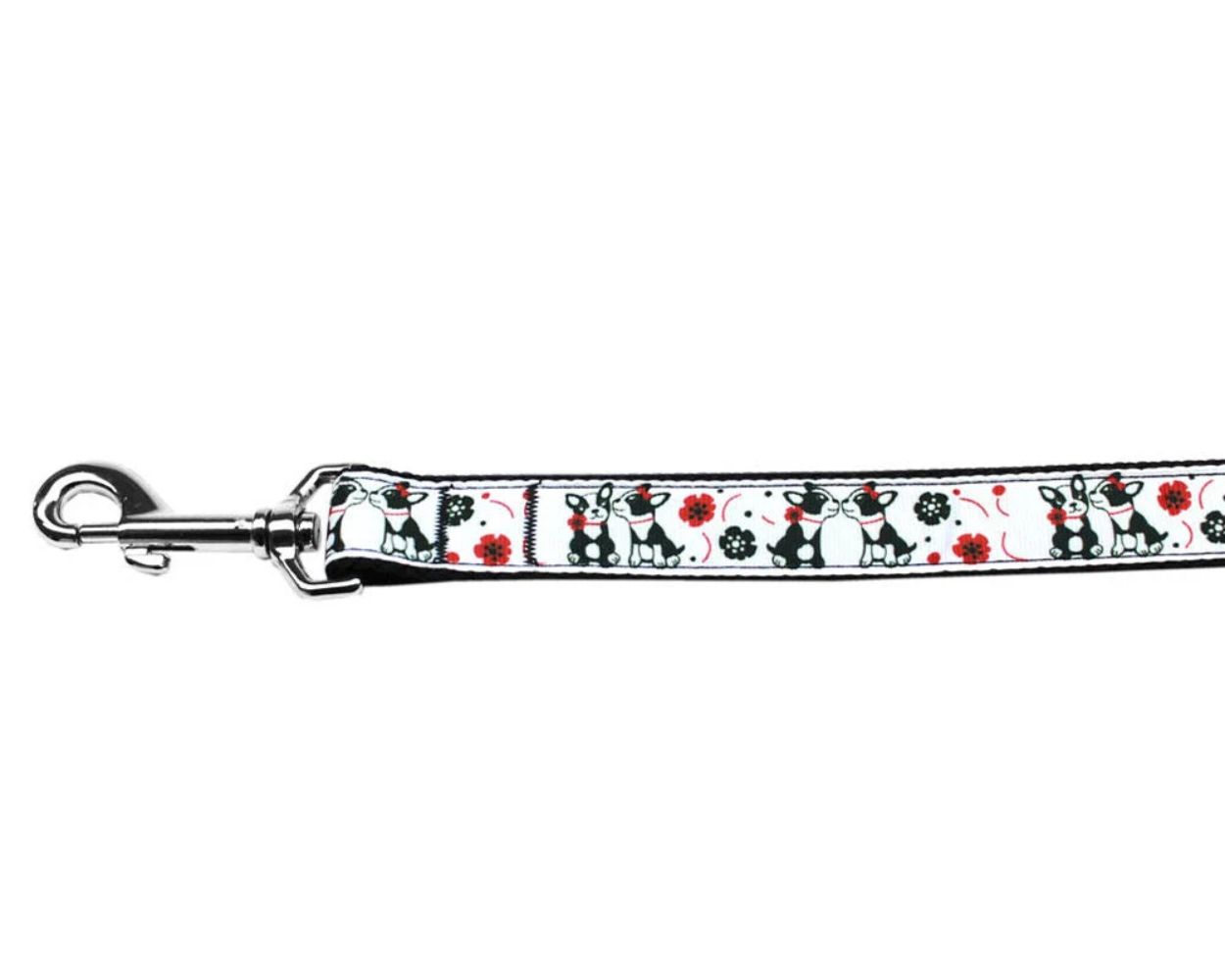 Our pet leashes come in 4' and 6' lengths and are available in 3/8", 5/8" or 1" widths.