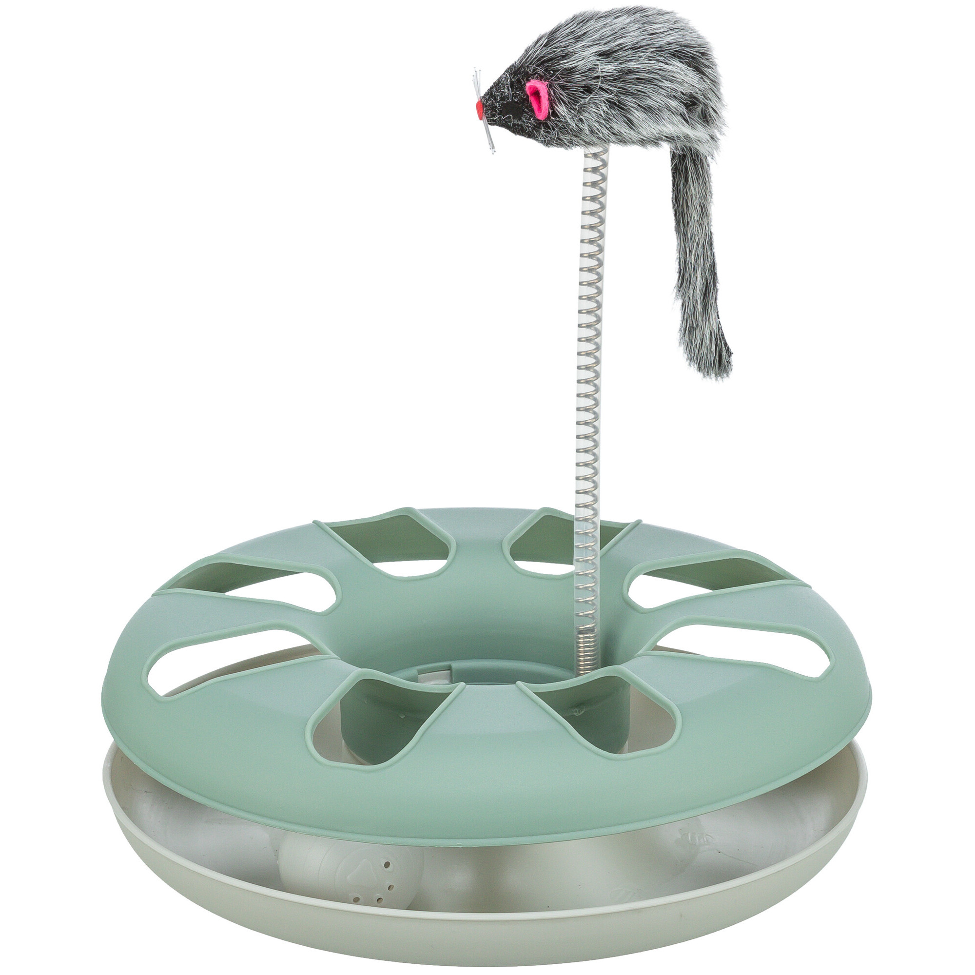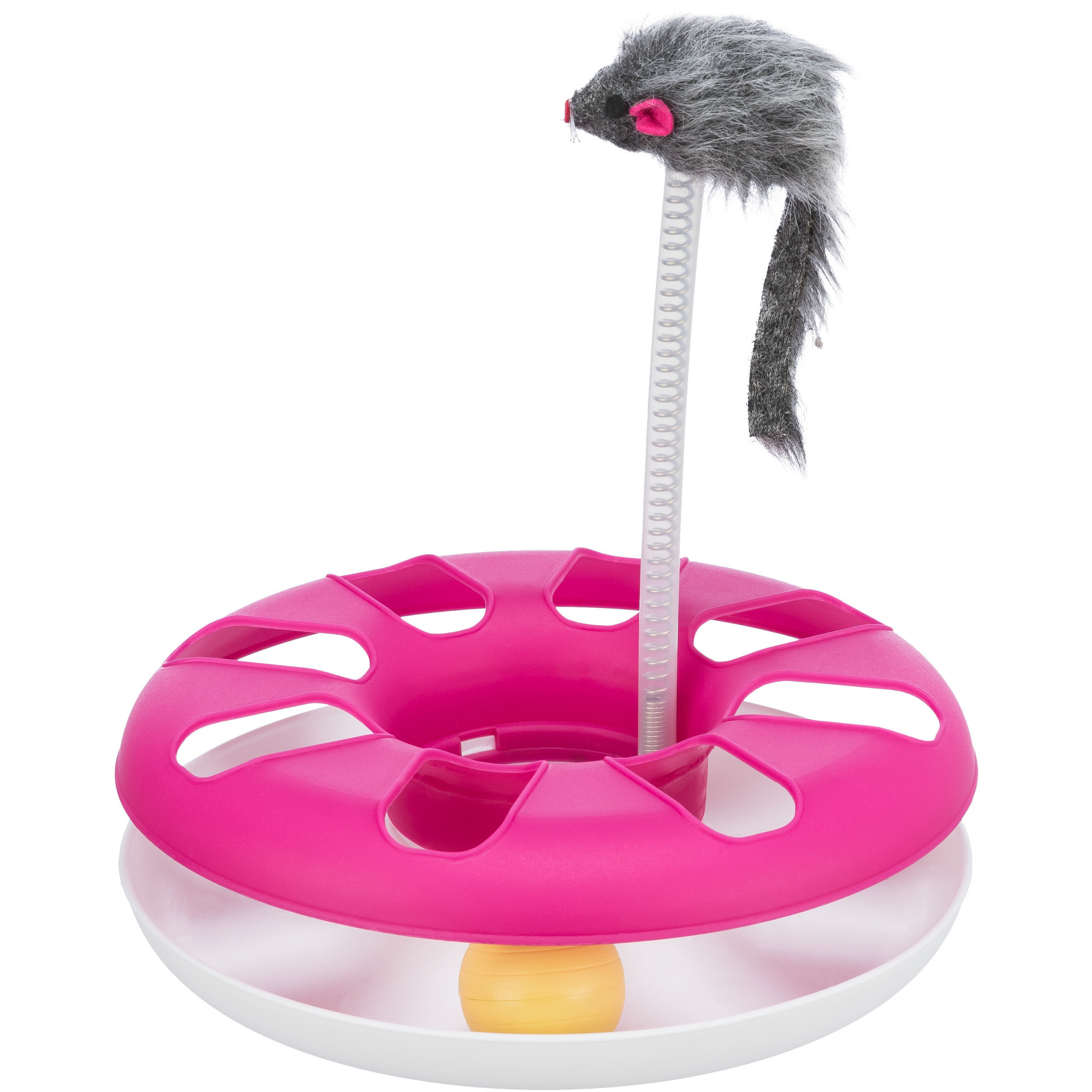 The TRIXIE Crazy Circle is ball rolling fun! It keeps your kitty engaged, mentally sharp, and entertained through instinctual play. This tubular track will drive your cat crazy as they bat, pounce, and ambush trying to get the ball out! The bonus mouse toy is a great spin of Cat and Mouse, giving your kitty the thrill of the hunt as she bats the mouse back and forth. The non-slip base design is perfect for active and energetic play. The Crazy Circle is the ultimate play station for curious cats! Made of durable, long-lasting, easy to clean plastic.