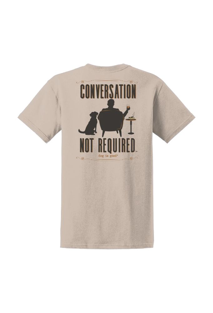 Introducing our "Conversation Not Required" T-shirt - more than just a t-shirt; it's a statement about the simple pleasures in life. Perfect for those who cherish the silent bond shared with their dog and the subtle warmth of a good whiskey. Slip into this shirt and let the world know that sometimes, the best moments are those spent in good company, no conversation needed.