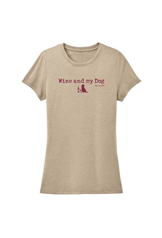 Introducing our "Wine and My Dog" T-shirt - a trendy design perfect for women who cherish moments with their dog and a good glass of wine! Crafted from a trendy tan-colored, soft spun cotton blend, this T-shirt is the perfect pairing of comfort and style. Whether you're out wine tasting at a vineyard or relaxing at home with a glass of red, show off your love for good wines and great dogs.