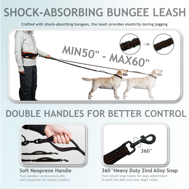 The DOCO® Jogging Belt + Bungee Leash boasts a durable Oxford polyester shell that ensures both longevity and comfort.
