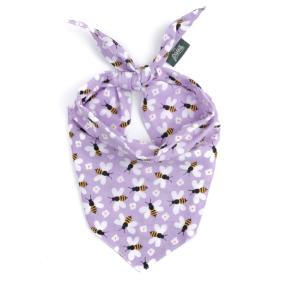 Honey Bees dog bandana - fun little bees on bright purple cotton