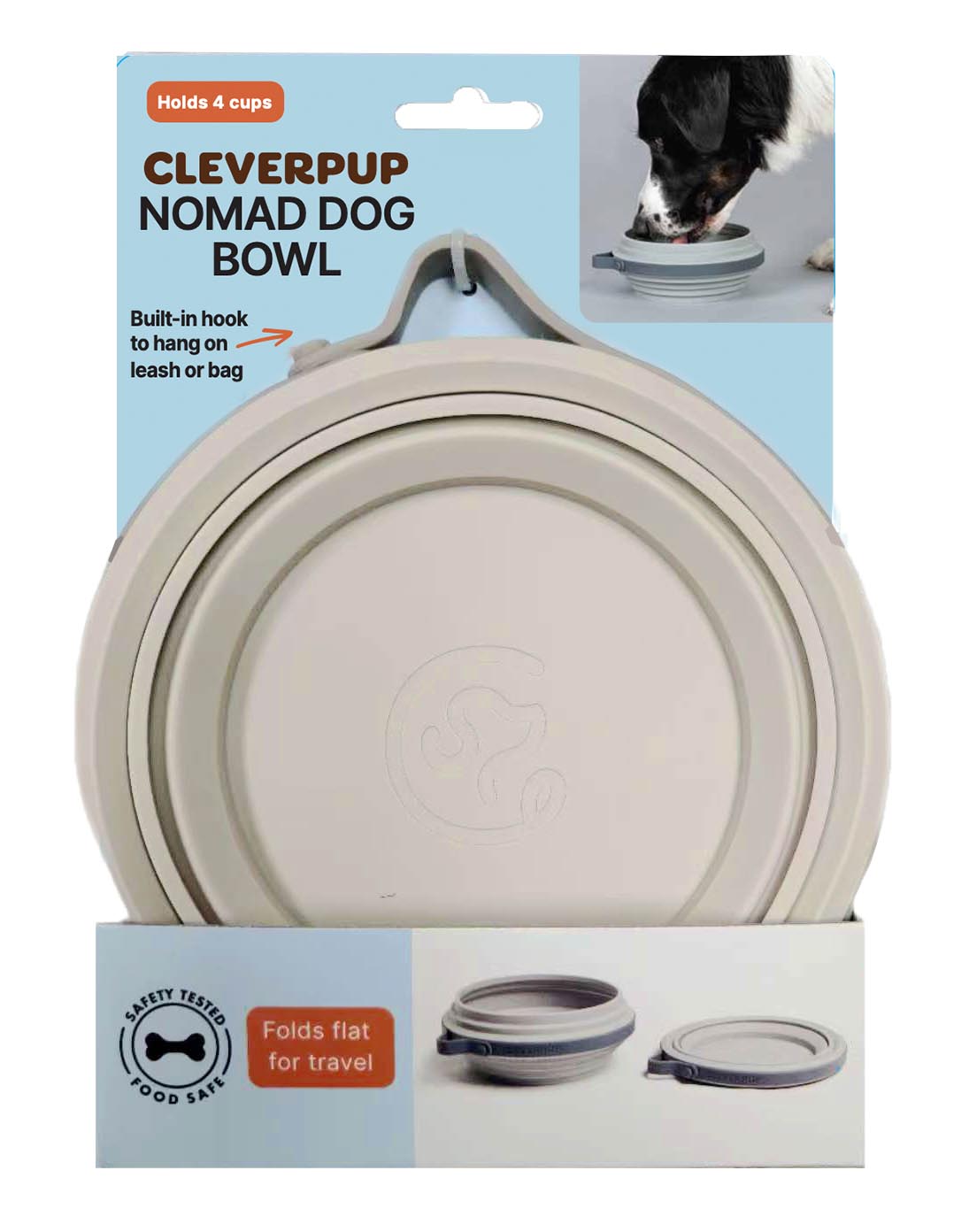 A sleek, next-level collapsible travel bowl made from FDA-standard, food-safe silicone with a metal-free clip loop for easy attachment. It folds flat in seconds, clips anywhere, and is always ready for water breaks, snacks, and adventures on the go.