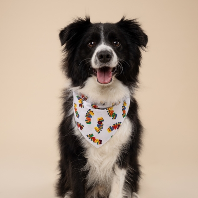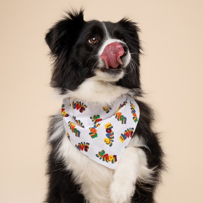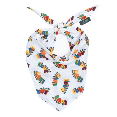Love - Spread love in style with this adorable Love Dog Bandana, featuring a vibrant colorful “LOVE” text design