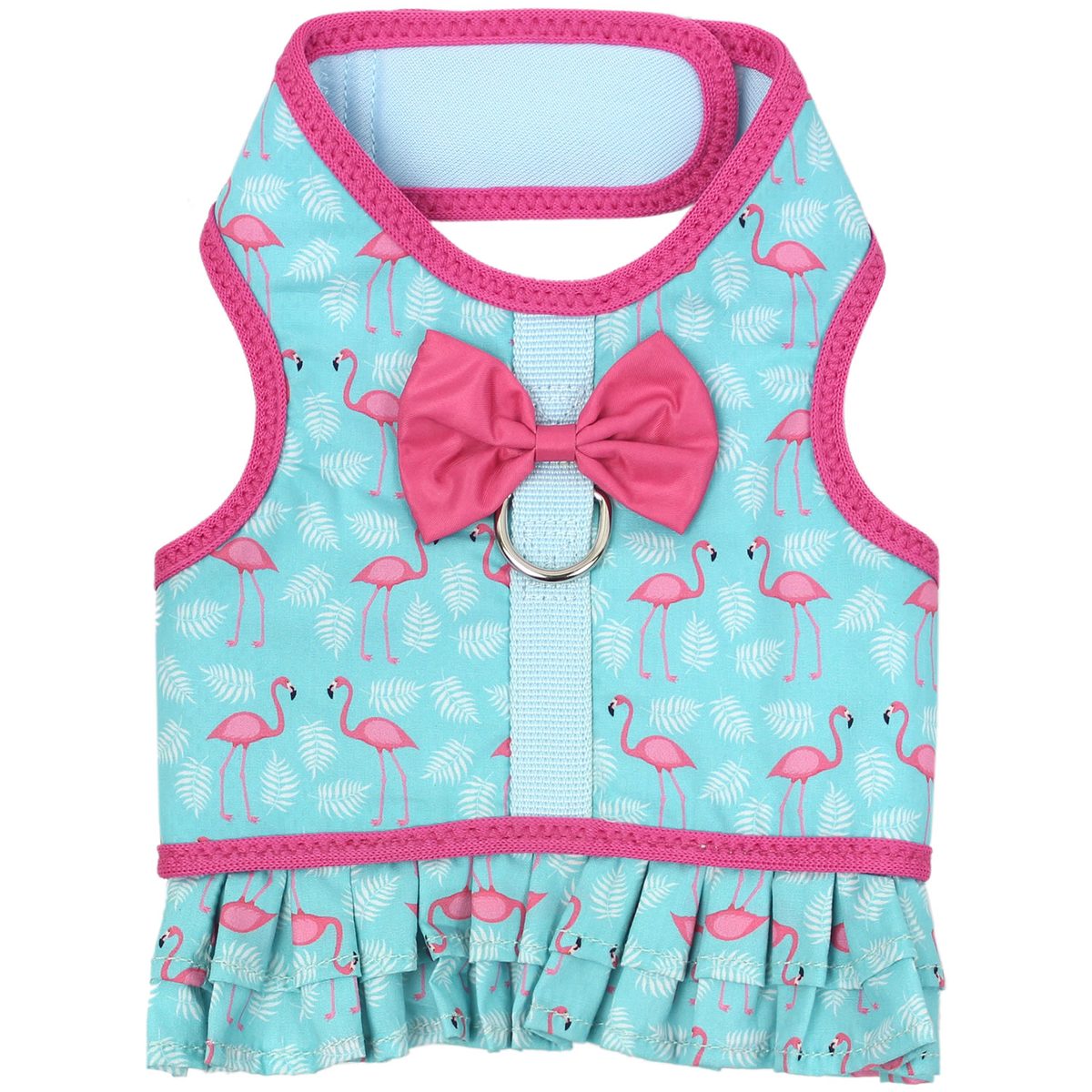 Bright, breezy, and bursting with tropical flair, the Flamingos Harness Dress is the perfect outfit for summer-loving pets. Featuring a playful flamingo print, sweet pink bow, and a flouncy ruffle skirt, this flamingo dog harness dress is both fashionable and functional. Designed in vibrant pink and aqua tones, this lightweight dress is ideal for sunny strolls and tropical-themed photo shoots.