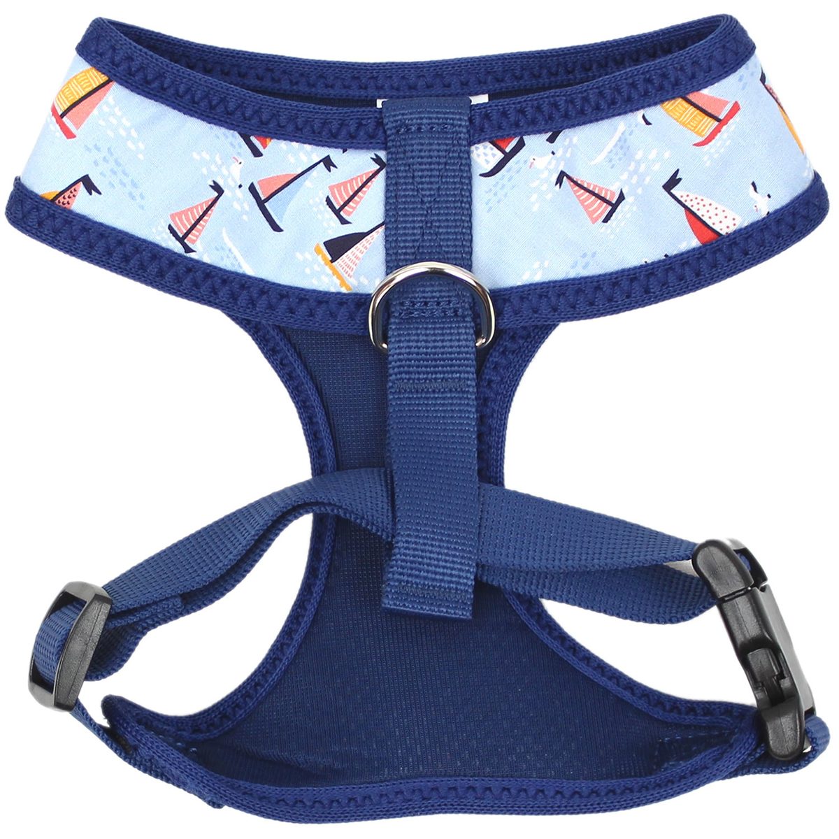 Ideal for everyday walks or weekend getaways, the sailboat print harness features an easy step-in design, sturdy adjustable buckle, and durable D-ring for leash attachment. Its breathable material and lightweight build make it the perfect summer accessory for dogs and cats who enjoy outdoor adventures in comfort and safety.