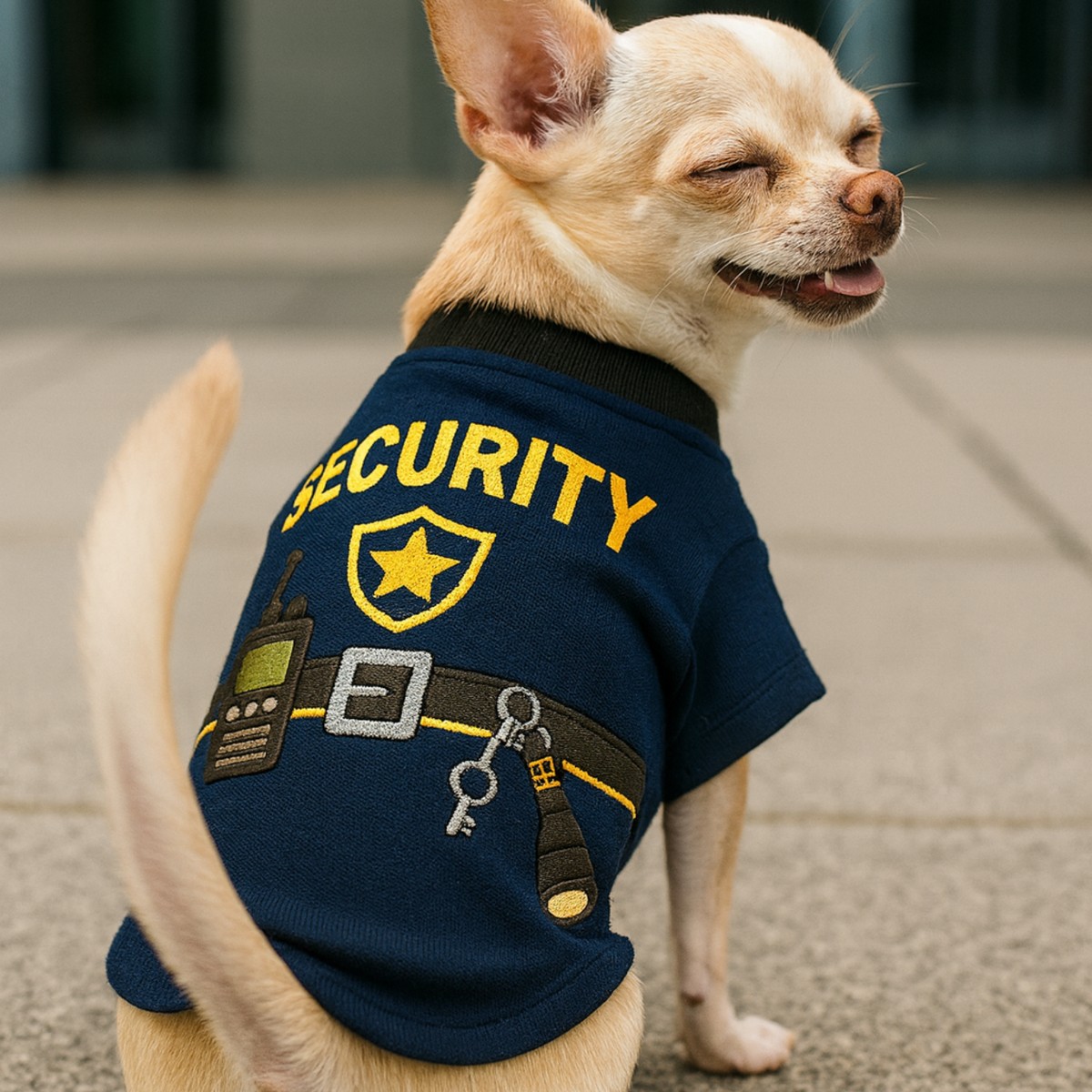 Keep your store secure—and adorable—with the Security Woofficer dog shirt from Parisian Pet. This hilarious and stylish t-shirt features a printed walkie-talkie, keychain, and belt, transforming any pup into a four-legged officer on duty. Designed with comfort and durability in mind, it’s made from a breathable cotton-poly blend and offers a flexible fit for active dogs.