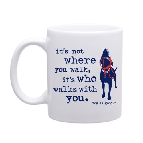 Introducing our "Never Walk Alone" 14 oz mug – perfect for those that enjoy a long walk with Dog! This classic mug is designed to keep your coffee breaks with Dog even more convenient.