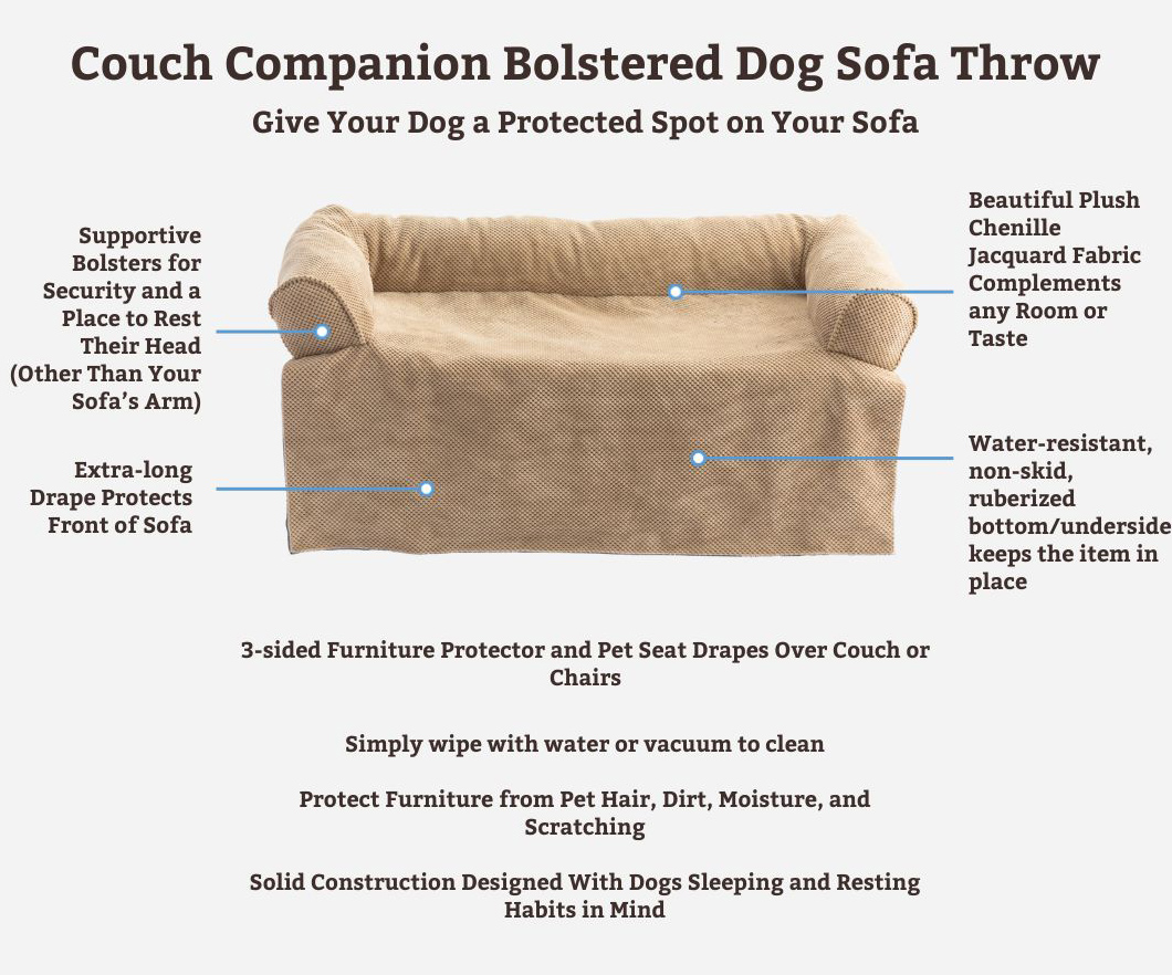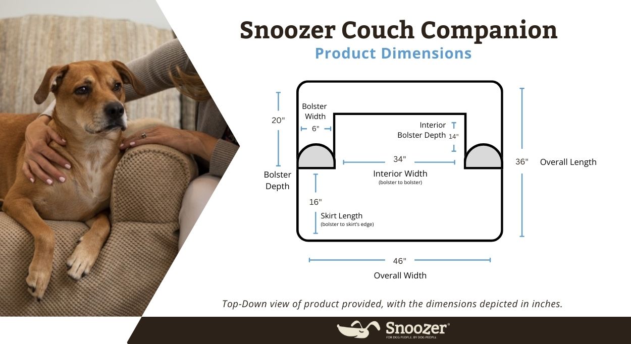 Do you have a "sofa dog"? Enter our no judgement zone. Whether your dog has full time sofa privileges, or hops up as soon as your gone, the Couch Companion Bolstered Sofa Throw by Snoozer ensures your dog is comfortable and your sofa is covered. Say goodbye to pet hair and drool spots on your sofa. Our Sofa Seat gives a comfy, supportive bed-like cover while protecting your furniture. Snoozer chooses only the best fabrics for your dog and home. The Sofa Seat is made with the same luxury fabrics found in high-end furniture to ensure durability, comfort, and a regal aesthetic. The Sofa Seat can be placed on standard sofas, oversized chairs, or even on the floor for dogs who prefer a harder surface but want a place to rest their head or paws. Guests coming over? Simply place the Sofa seat on the floor and no one will be the wiser.
