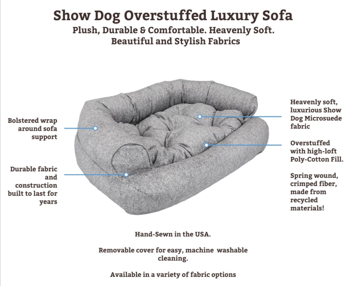 *SNUG SUPPORT AND SECURITY. Our Overstuffed Luxury Dog Sofa features large wraparound bolsters, creating a cozy dog couch all their own! This is ideal for dogs who like to rest their heads up high, curl up into the corner, and snuggle against something soft when they snooze. Our dog sofa is designed to look great and provide your dog a feeling of security, which means reduced anxiety and increased comfort for restful sleep – and a great-looking addition to your home!*SAVE YOUR SOFA! If you’ve tried everything to keep your dog off the couch, here’s your solution. Our stylish dog sofa is so comfortable, your dog will quickly claim it as their own, so you can save your sofa for the two-legged members of the family!