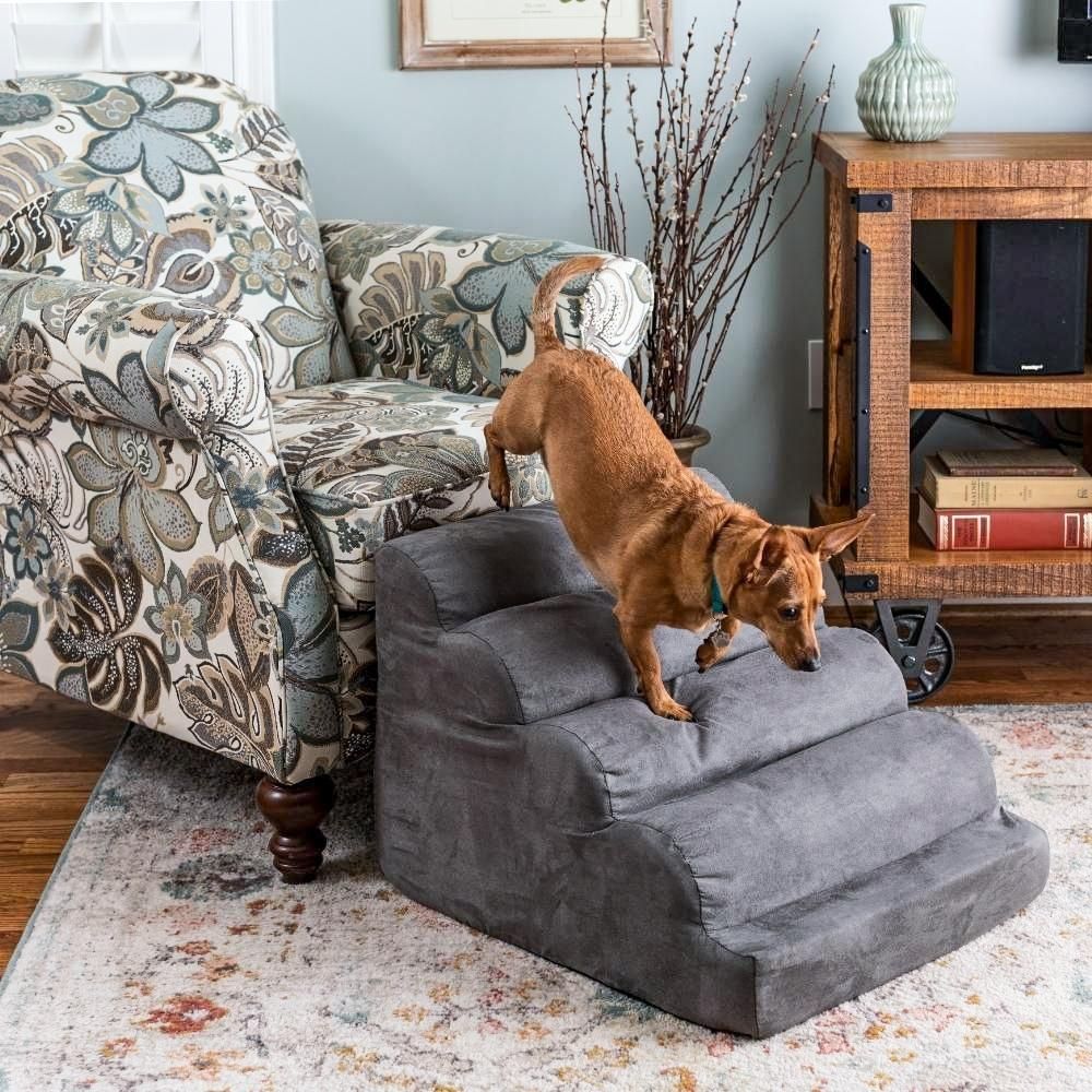 *HAPPY DOGS. Dogs need high-quality comfort, too! Our microsuede or faux suede dog stairs feel just like genuine suede leather without any of the drawbacks. Microsuede is incredibly breathable while also being luxuriously soft to the touch, which means your dog can take their everyday ups and downs in cozy comfort. *LONG-LASTING. Microsuede fabric is built to last! This strong and durable faux suede cover stands up to daily wear-and-tear from even the most enthusiastic pups, which means your dog will be able to enjoy it for longer, and you’ll save money with high-quality dog stairs that hold up for years. *EASY TO CLEAN. No more dirty, smelly dog stairs – our microsuede covers are stain-resistant, water-repellant, and machine washable, too! Just remove the easy-off zippable cover to wash cold, then tumble dry low. Easy to keep clean means your dog always has a clean, fresh set of pet stairs to maneuver. *LOOKS GREAT! Our dog stairs are made to fit into your life and your style. We offer our top-of-the-line microsuede covers in lots of richly colored and vibrant patterns, which means your dog’s stairs will fit into your homes décor and look stylish, no matter your style.