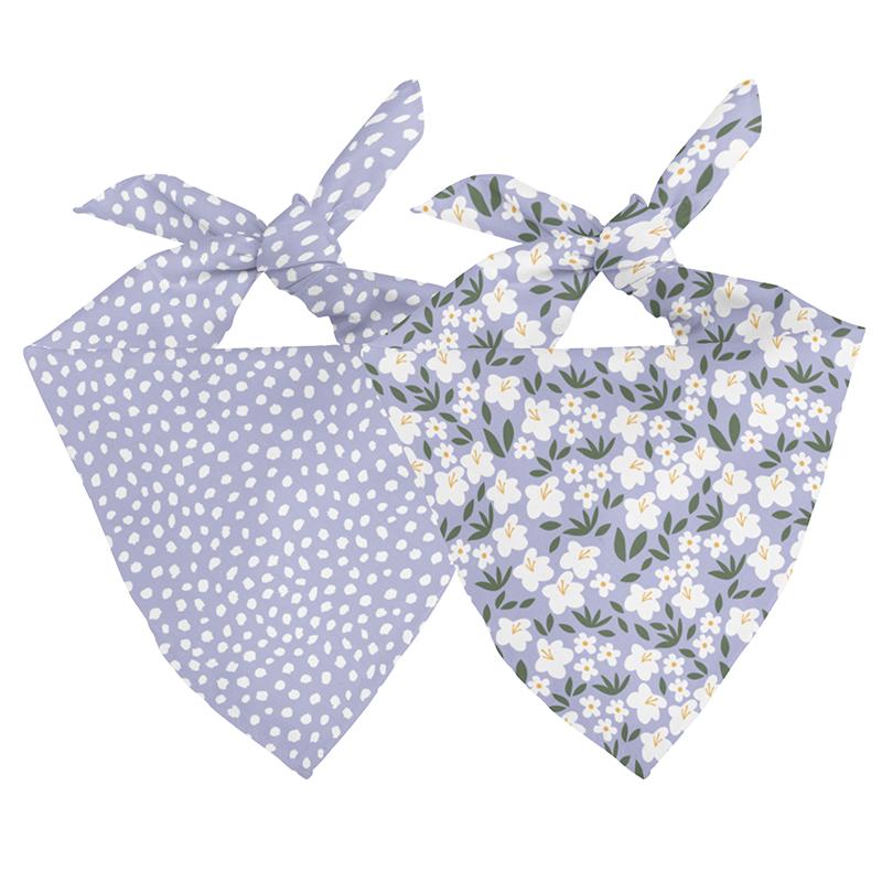 This double sided bandana features two fun lavender prints. This bandana is made of our signature cotton fabric and is available in sizes small, medium, and large.