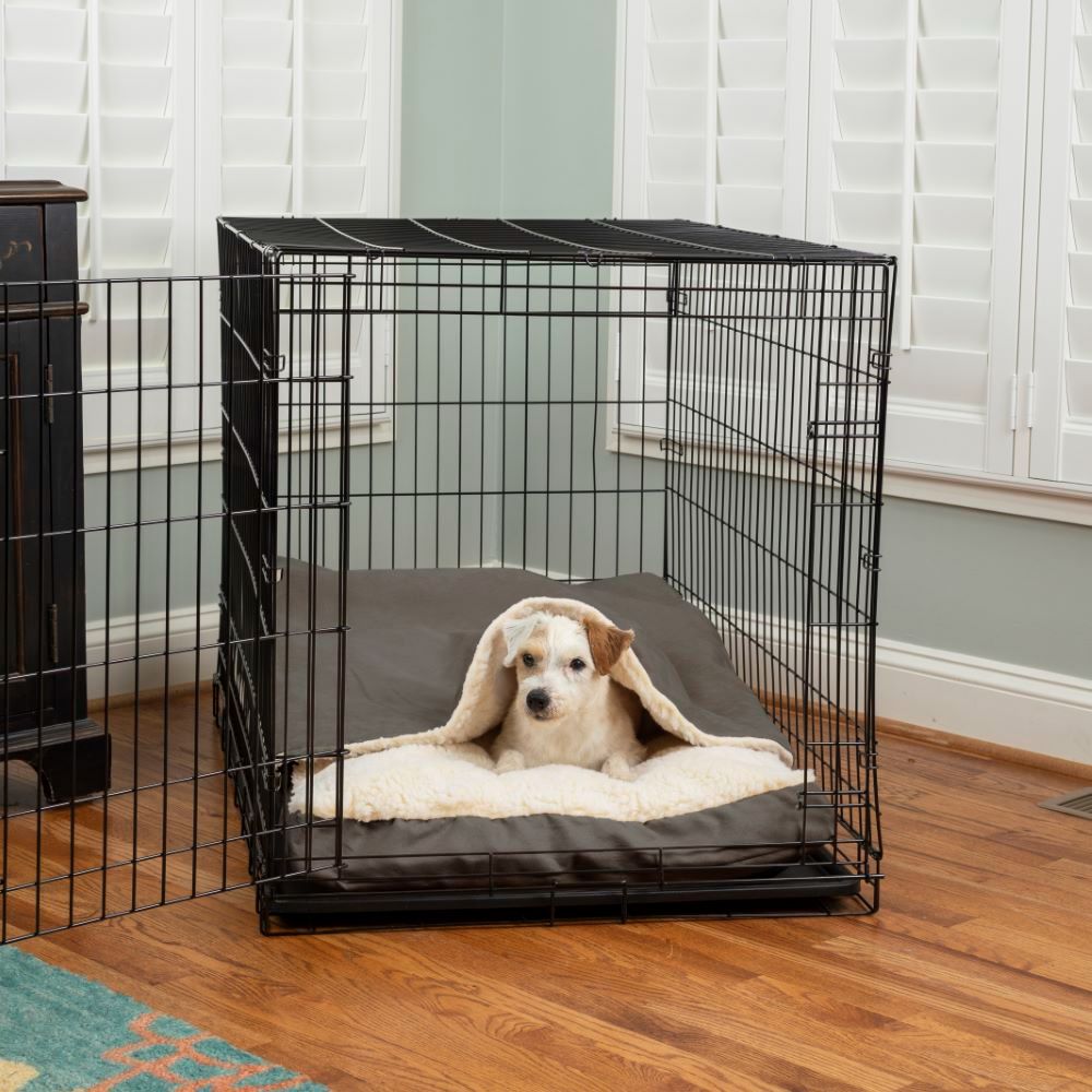 Crate life and Cozy Cave living are no longer at odds with each other. Your pup can enjoy the world-class features of the best selling cozy cave in the comfort of their own cave. Like A Hug For Your Dog! Is your dog a cuddler? A snuggler? A burrower? Then the Cozy Cave dog crate bed is just what you’re looking for! The hooded dog bed design lets your dog snooze between layers of soft Sherpa lining for the ultimate in enveloped comfort and coziness. Sleeping in the Cozy Cave dog crate bed is the next best thing to sleeping next to you, and your dog will love it! Calmer, Happier Dogs. Made to appeal to a dog’s natural instincts for burrowing, the Cozy Cave is the best dog bed for dogs who love sleeping under blankets or prefer to spend time in their own little “den.” Our dog cave bed gives them a place of their own to relax with a feeling of safety and security for less anxiety and more restful sleep. Best In Class. The Cozy Cave is the best-in-class dog cave bed on the market, with 1000 5-star reviews from happy customers!