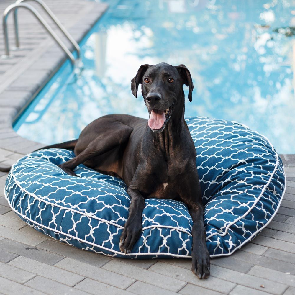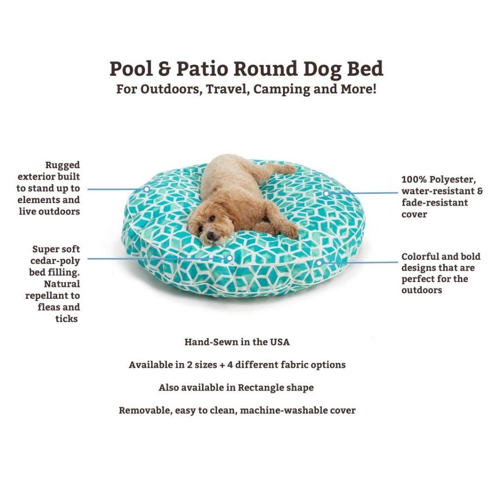 *FOR OUTDOOR LOUNGING AND INDOOR LIVING. Snoozer’s indooroutdoor dog bed is the perfect place for your dog to snooze when the family’s relaxing poolside, chilling on the patio, or playing in the yard. It’s also attractive and comfortable enough for daily use inside the home, too! Built to live outdoors, the 100% polyester cover is water-resistant (not water-proof), fade-resistant, and comfortable, so your dog always has a place to relax with the family both inside and out.*EASY TO CLEAN. Our removable Pool & Patio indoor outdoor dog bed cover is a breeze to keep clean – simply machine wash cold and hang to dry. The zipper makes it a cinch to take the cover off and put it back on, too. It’s never been easier to keep your dog’s bed clean for safe, healthy sleep.*FUN & FASHIONABLE. Colorful and bold designs are perfect for the outdoors. Add some style poolside, patioside, or indoors…. no matter where your family spends time together, your dog will be right there enjoying the fun, too.