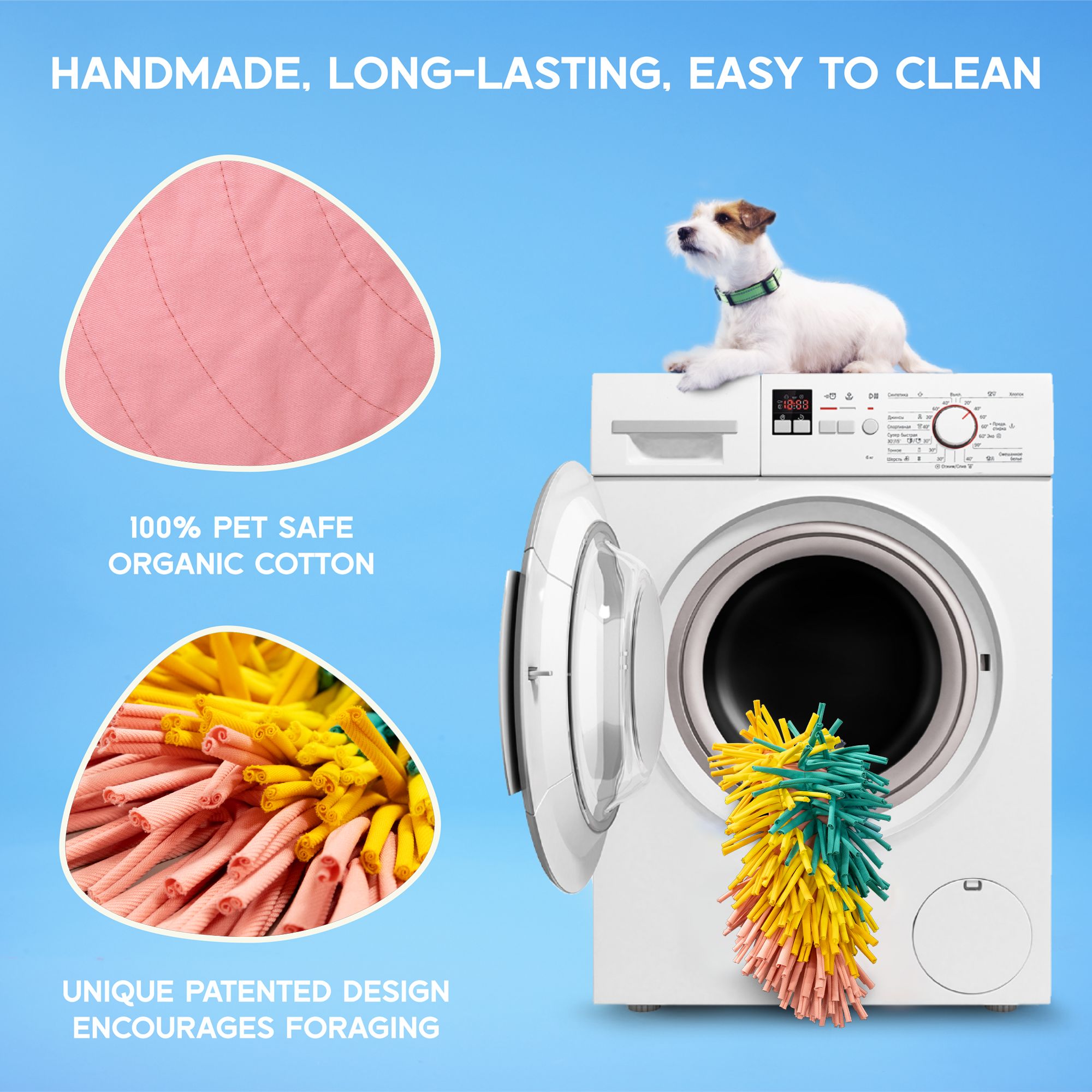 The Rainbow Snuffle Mat is easy to keep clean - just toss it in the washer and the dryer!