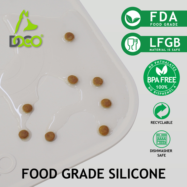 The DOCO® Silicone Pet Food Mat features an elevated edge design that effectively keeps all mess confined to the mat, preventing spills and stains on your floors. This adorable, waterproof mat is perfect for use under pet food bowls, water dishes, pet fountains, automatic feeders, and feeding stations, offering protection for your floors whether you have a dog, cat, or other pets. Cleaning is a breeze with this dog bowl mat – simply wipe it down with a wet cloth, wash it by hand, or toss it in the dishwasher for a thorough clean. Its portable design allows you to easily roll it up and take it with you when traveling or visiting friends, ensuring your pets can enjoy their meals mess-free wherever you go.