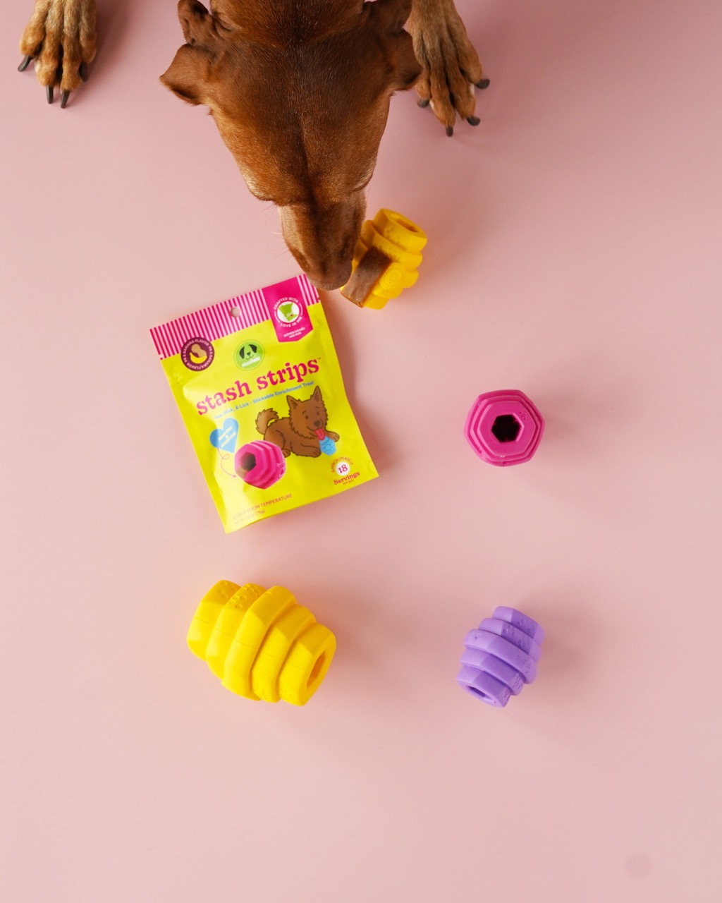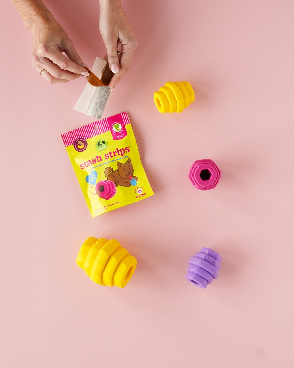 Love enrichment, hate the mess? Say goodbye to messy prep! Stash strips are sticky and moldable, made to stay put in toys, bones, or bowls. Ideal for daily enrichment, combating boredom, or convenient on-the-go treats.